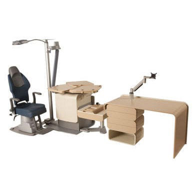 TECHNICAL DATA Refraction unit with manual rotary table for 3 instruments and manual working position - electric up/down movement of the instruments table and rotation system for patient chair - table locking system in any position - 4 different control panel consoles with touch-screen keyboard: "compact" no drawer (code 10.330.10), "elegance" with 1 drawer and trial lens tray (code 10.330.11), "highline" with 3 drawers and trial lens tray (code 10.330.13) and "mix" with 1 drawer, trial lens tray and open compartment (code 10.330.15). Column with adjustable LED lamp and projector support. Patient chair with electric up/down movement.