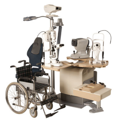 | Refraction unit with manual rotary table for 3 instruments and manual working position - electric up/down movement of the instruments table and rotation system for patient chair - table locking system in any position - 4 different control panel consoles with touch-screen keyboard: "compact" no drawer (code 10.330.10), "elegance" with 1 drawer and trial lens tray (code 10.330.11), "highline" with 3 drawers and trial lens tray (code 10.330.13) and "mix" with 1 drawer, trial lens tray and open compartment (code 10.330.15). Column with adjustable LED lamp and projector support. Patient chair with electric up/down movement. | ![]() |