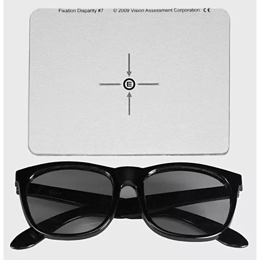 Vectographic two-dimensional Fixation Disparity Cross with Central Fusion Lock for assessing Near Point of Fixation Disparity (NPFD) (50 inches / 127cm) & Associated Vergence Measures at Near (16 inches -18 inches / 41cm - 46cm)