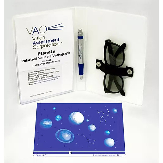 Includes: Protective Therapy Binder with pen, Doctor and Patient Manuals, Therapy Record Form & Standard Polarized Viewer