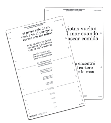 Continuous text reading cards in Spanish