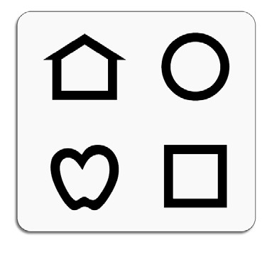 Response key with LEA SYMBOLS®. Printed on one side. Response Key is now translucent to allowing to easily view which optotype the child is pointing to.