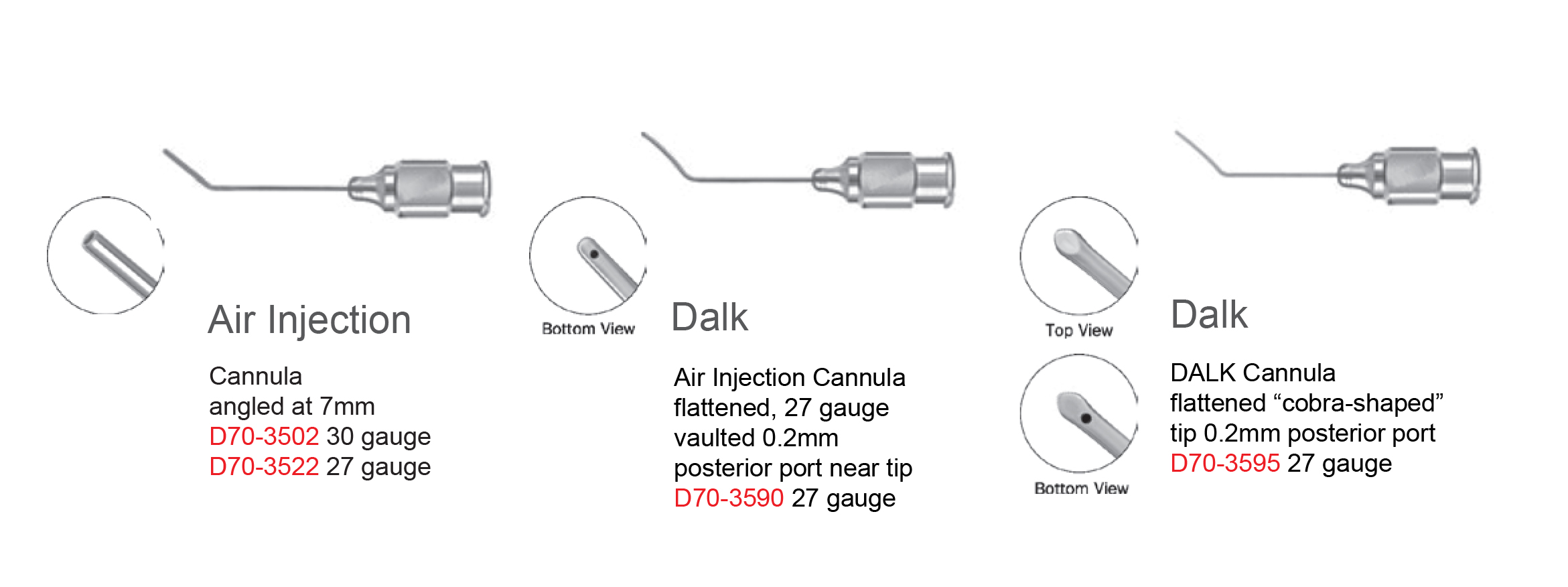 DALK Cannula flattened “cobra-shaped” tip 0.2mm posterior port