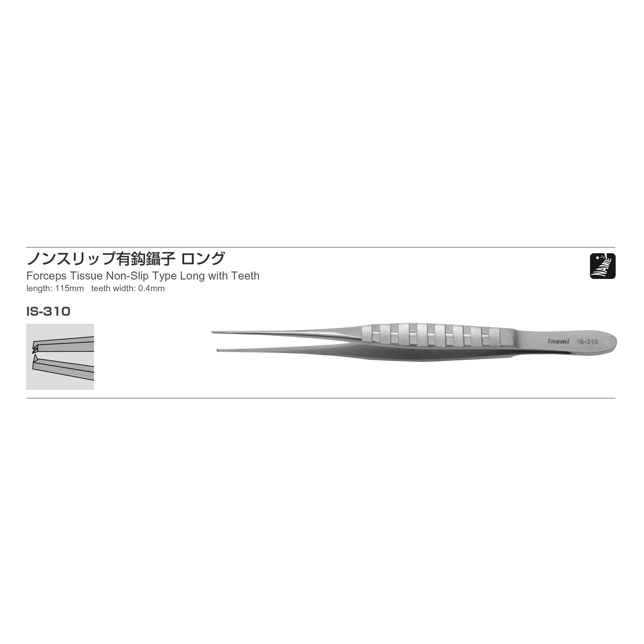 Forceps Tissue Non-Slip Type Long with Teeth