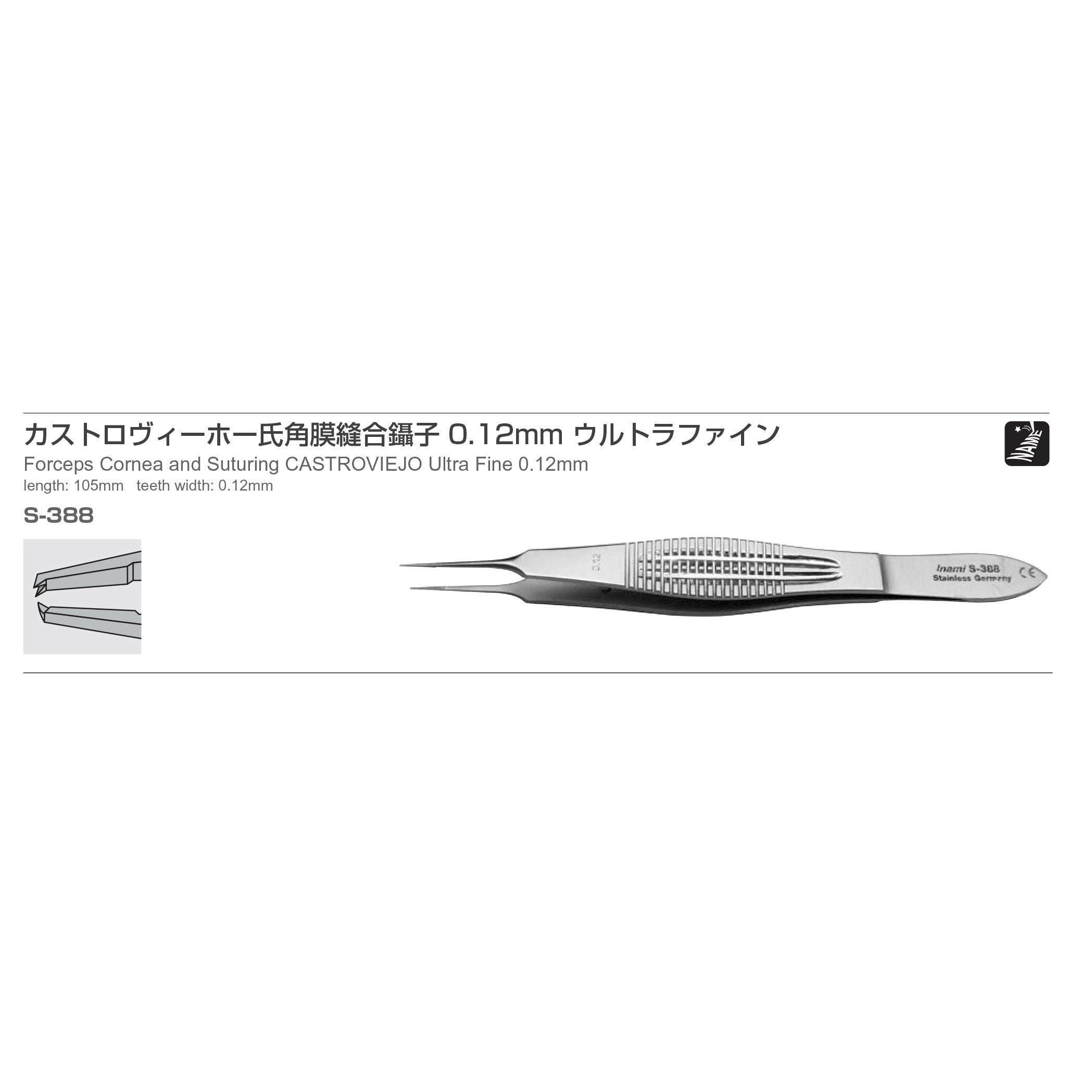Forceps Cornea and Suturing CASTROVIEJO Ultra Fine 0.12mm