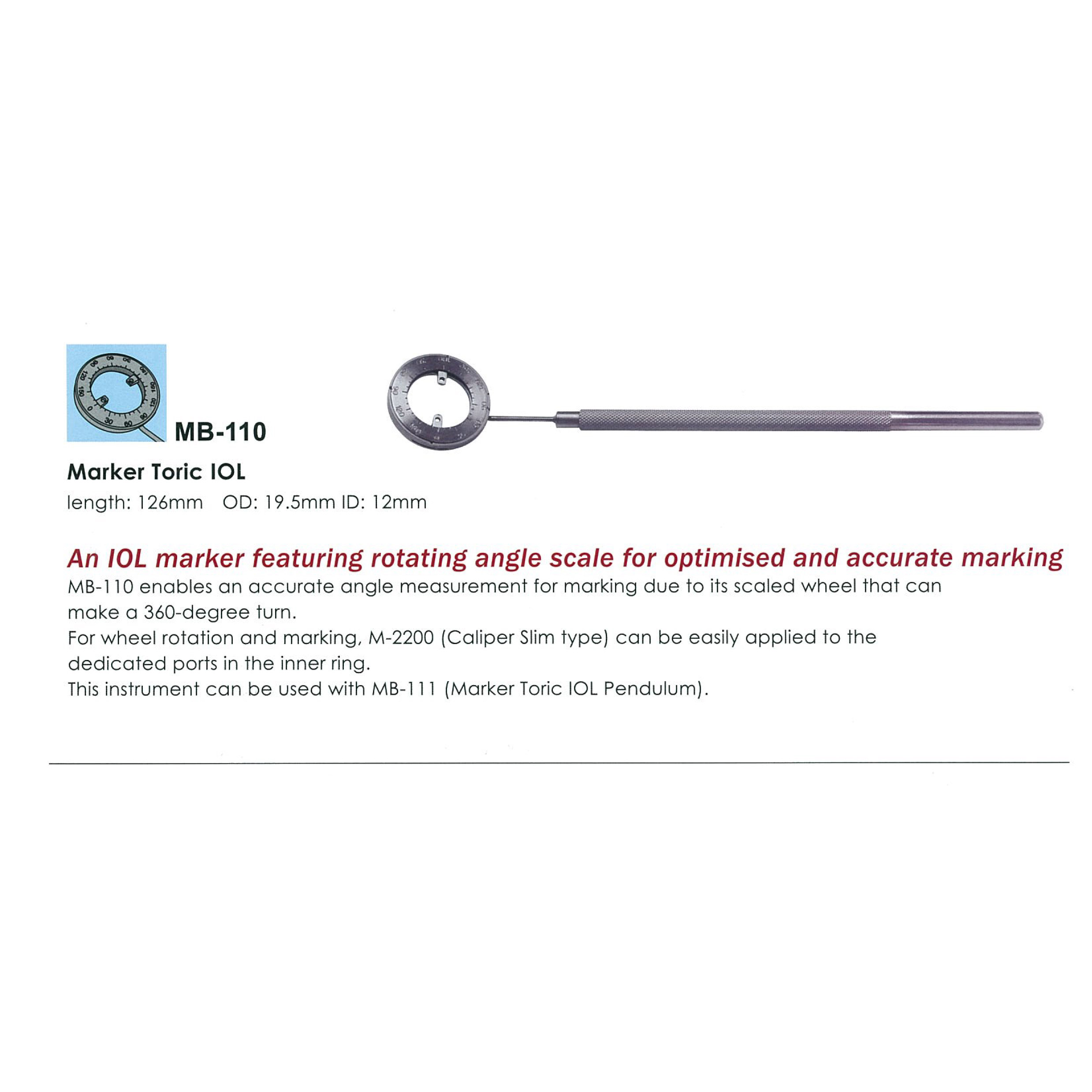 This instrument can be used with MB-III (Marker Toric IOL Pendulum).