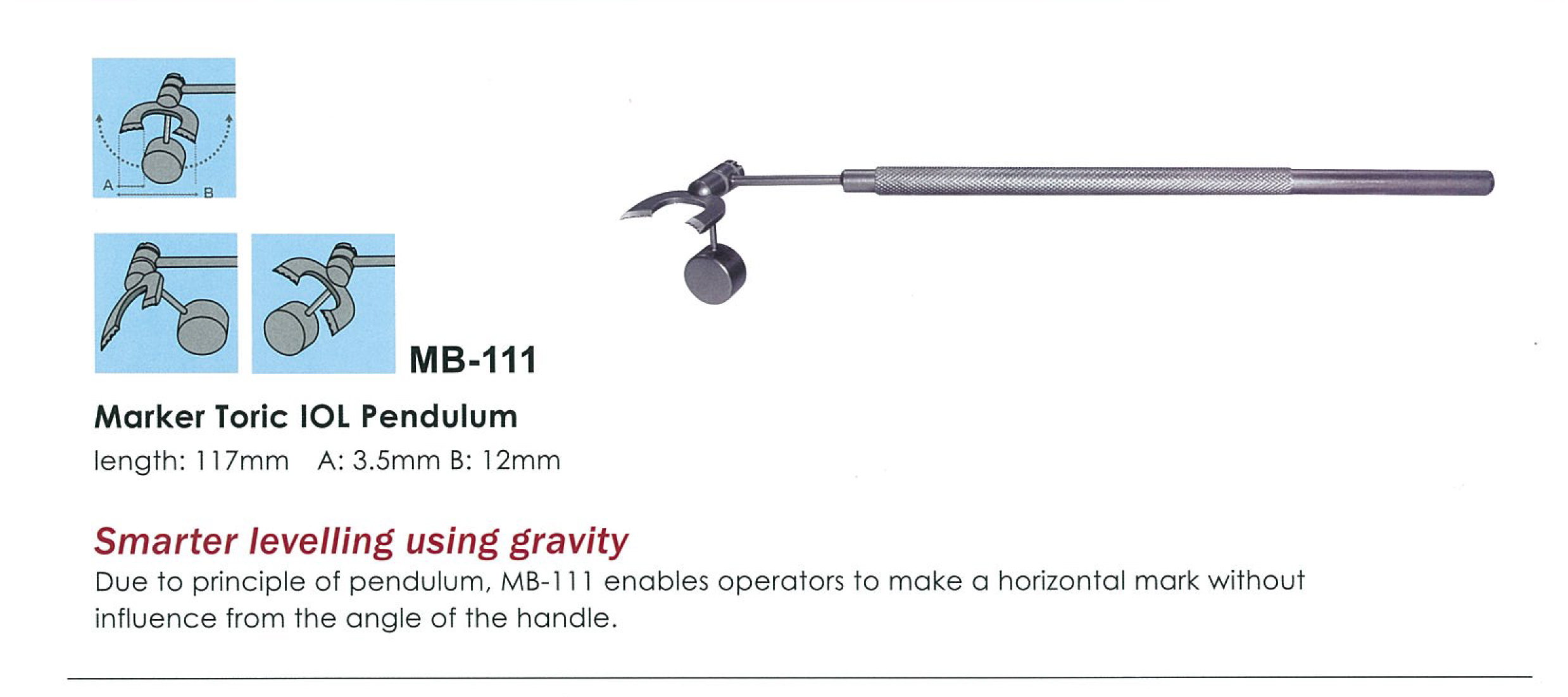 Due to principle of pendulum, MB-III enables operators to make a horizontal mark without influence from the angle of the handle.