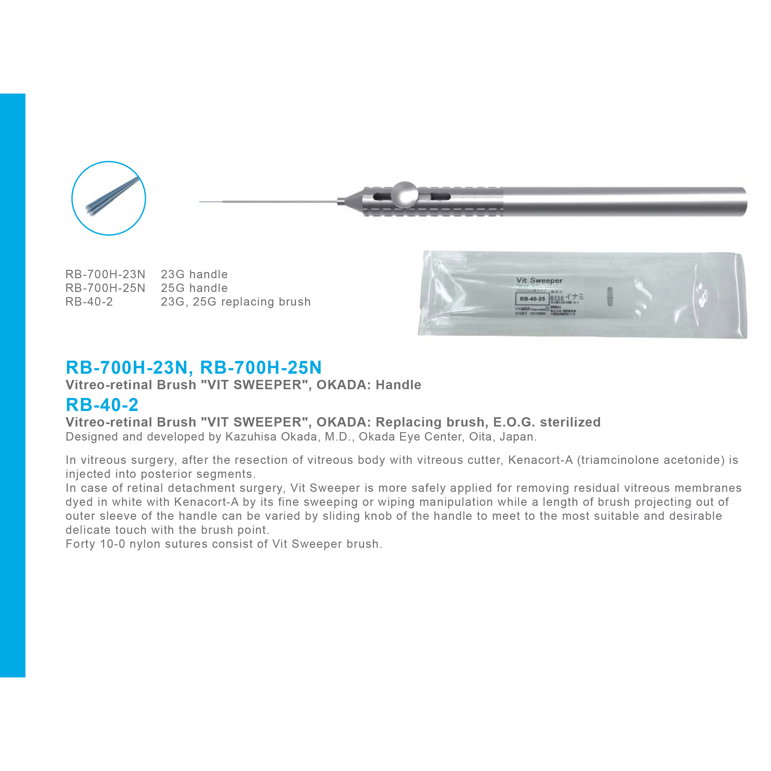 Vitreo-retinal Brush "VIT SWEEPER", OKADA: Replacing brush, E.O.G. sterilized