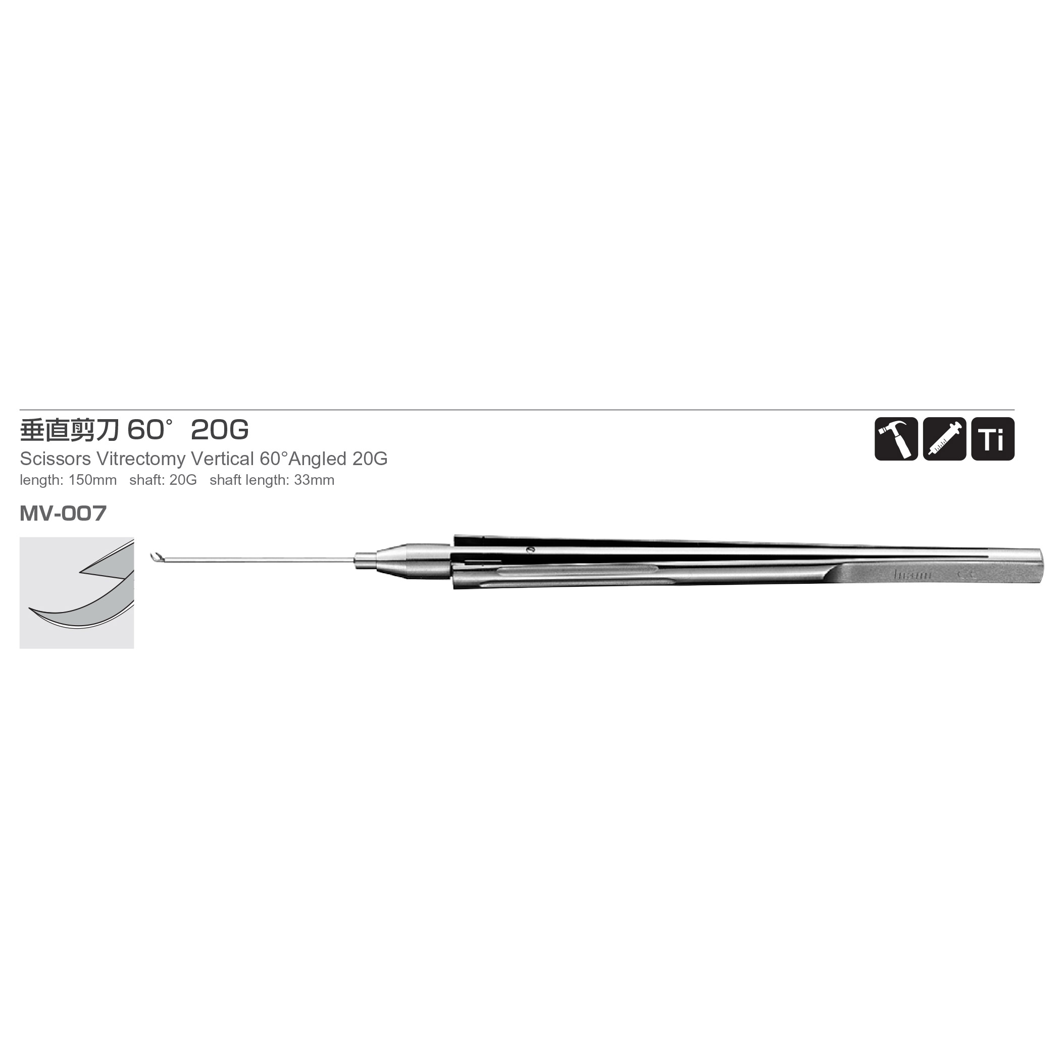 Scissors Vitrectomy Vertical 60°Angled 20G